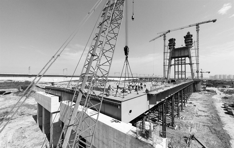 引江濟(jì)淮將軍嶺路橋鋼箱梁主梁順利合龍